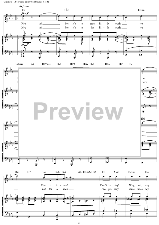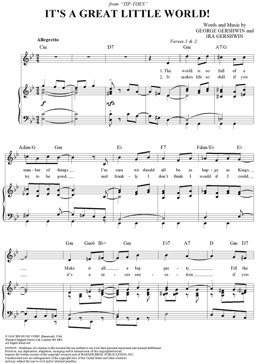 Digital Sheet Music for It's a Great Little World! by George Gershwin, Ira Gershwin scored for Piano/Vocal/Chords; id:268585