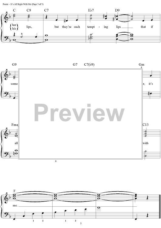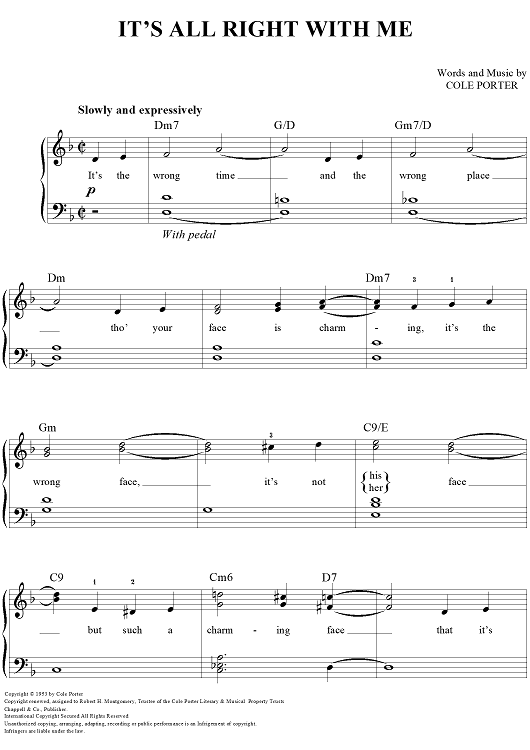 Digital Sheet Music for It's All Right With Me by Cole Porter scored for Easy Piano/Vocal/Chords; id:433084