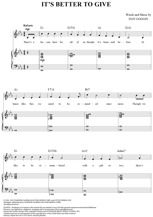"It's Better to Give" Sheet Music by Dan Goggin
