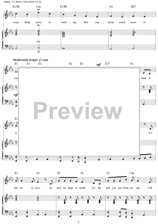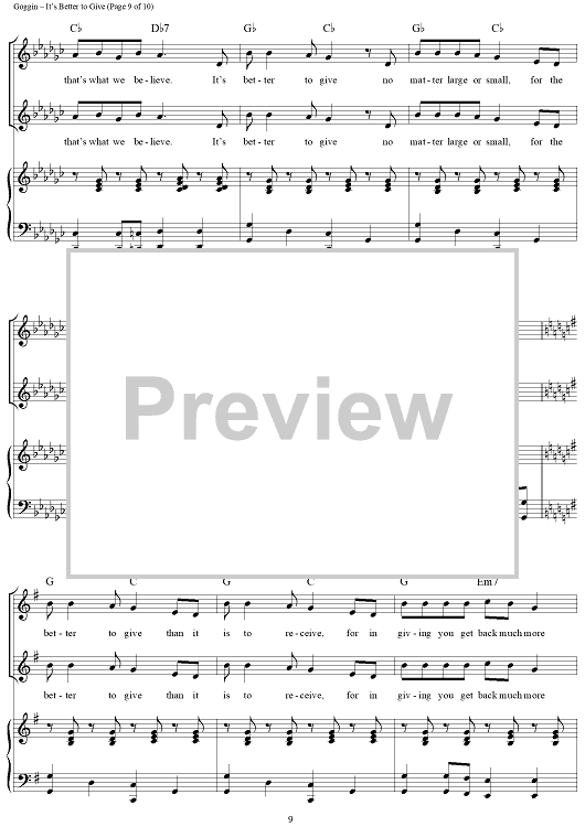 Digital Sheet Music for It's Better to Give by Dan Goggin scored for Piano/Vocal/Chords; id:312520