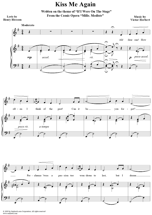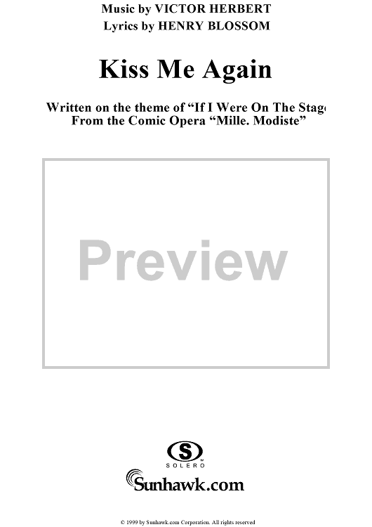 Digital Sheet Music for Kiss Me Again by Henry Blossom, Victor Herbert scored for Piano/Vocal; id:118399