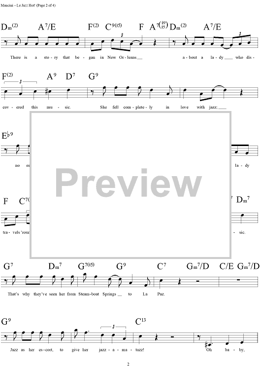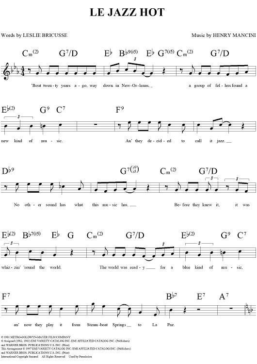Digital Sheet Music for Le Jazz Hot! by Henry Mancini, Leslie Bricusse scored for Lead Sheet; id:109842