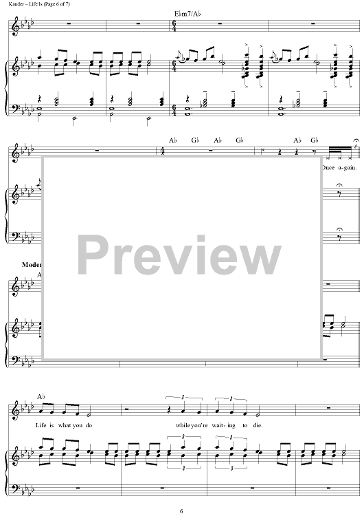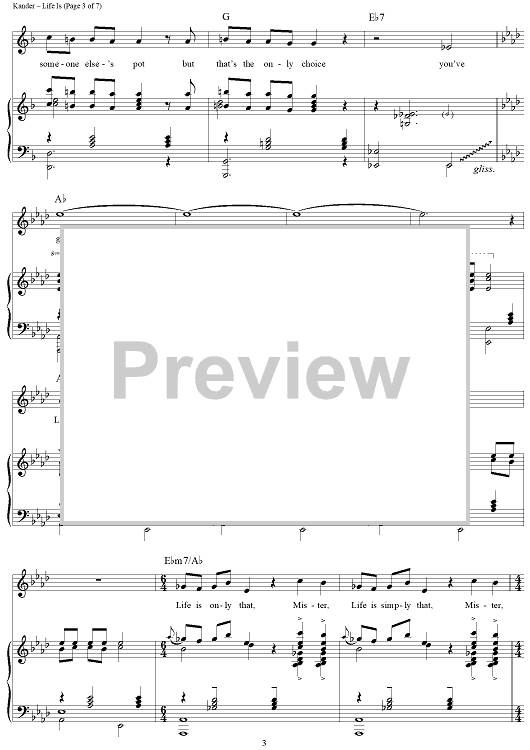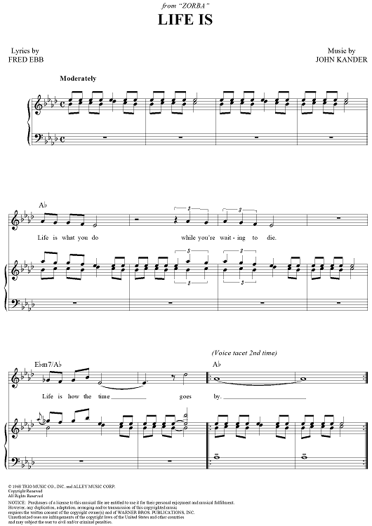 Digital Sheet Music for Life Is by John Kander, Fred Ebb scored for Piano/Vocal/Chords; id:112037