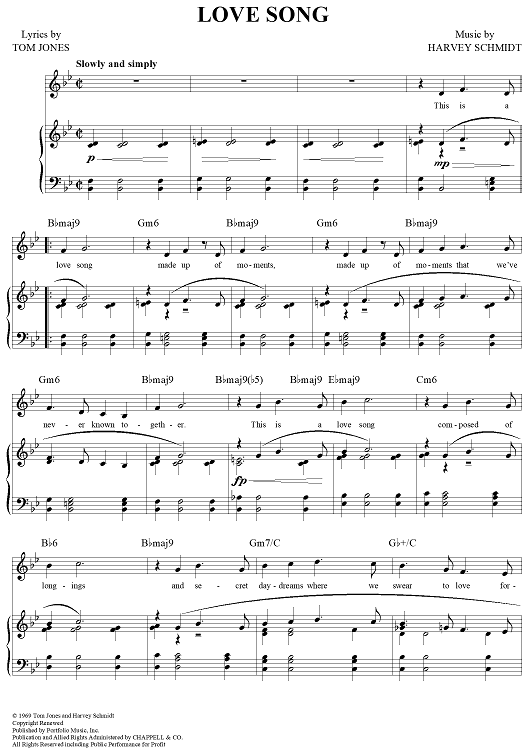 Digital Sheet Music for Love Song by Tom Jones, Harvey Schmidt scored for Piano/Vocal/Chords; id:304252