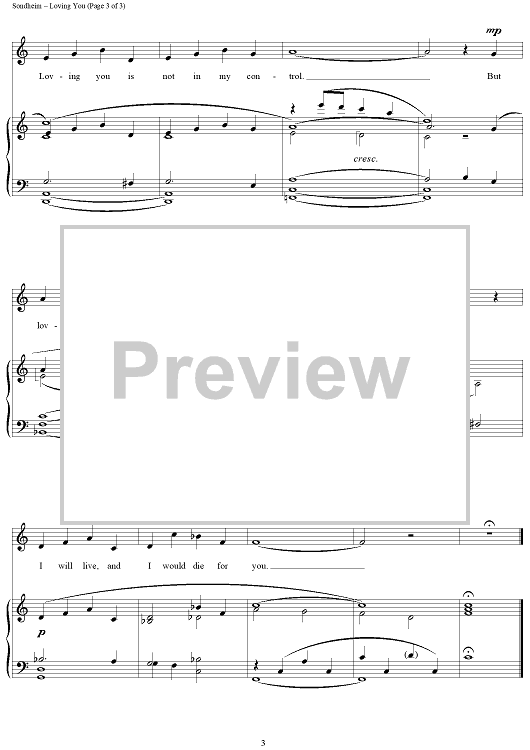 Digital Sheet Music for Loving You by Stephen Sondheim scored for Piano/Vocal; id:355964
