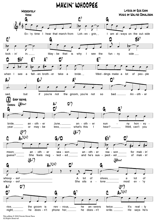 Digital Sheet Music for Makin' Whoopee by Gus Kahn, Walter Donaldson scored for Lead Sheet; id:307506