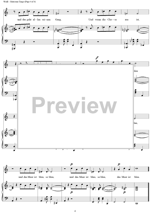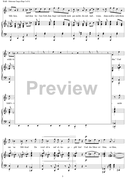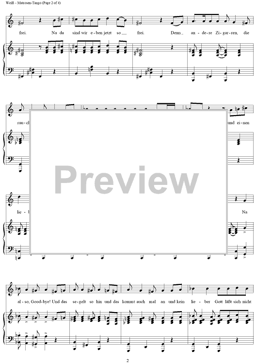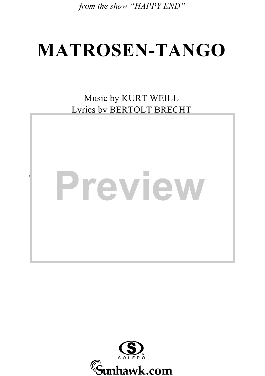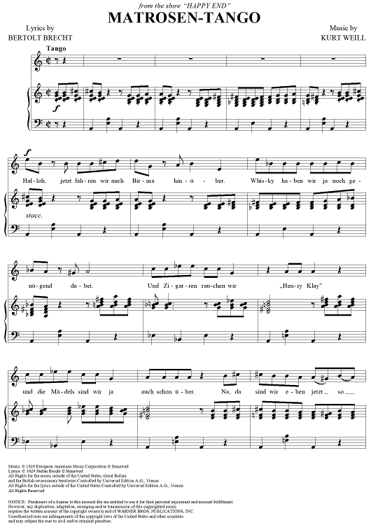 Digital Sheet Music for Matrosen-Tango by Bertold Brecht, Kurt Weill scored for Piano/Vocal; id:263523