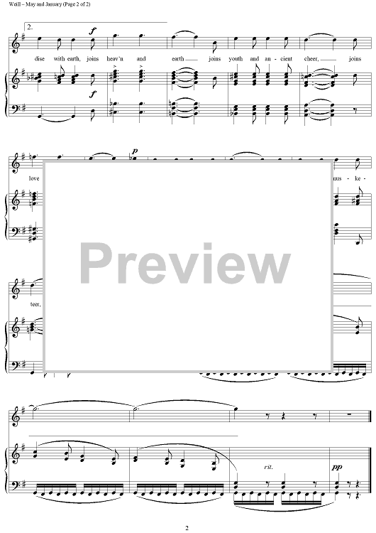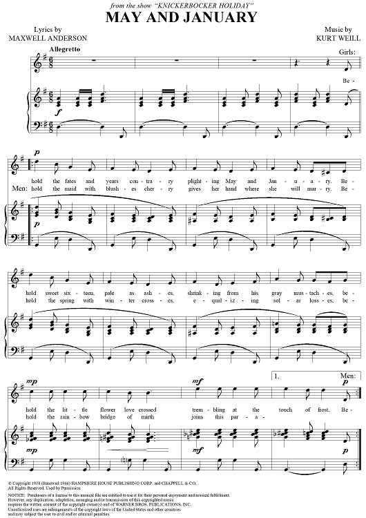 Digital Sheet Music for May and January by Maxwell Anderson, Kurt Weill scored for Piano/Vocal; id:263524