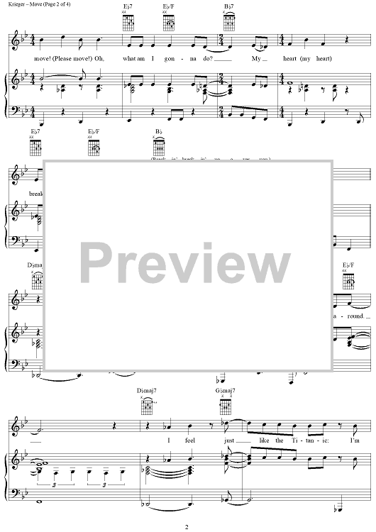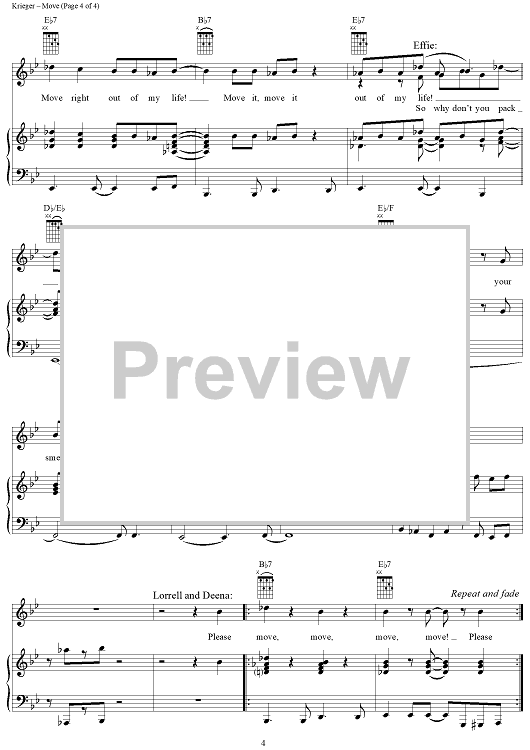 Digital Sheet Music for Move (You're Steppin' on my Heart) by Henry Krieger, Tom Eyen scored for Piano/Vocal/Chords; id:313479