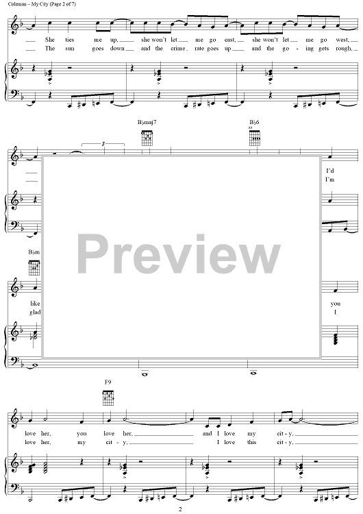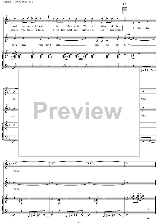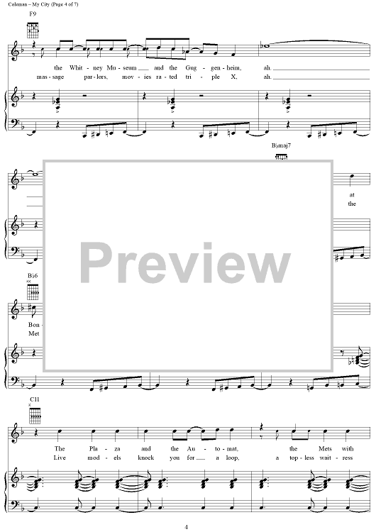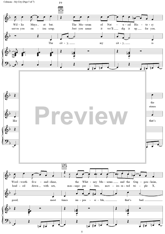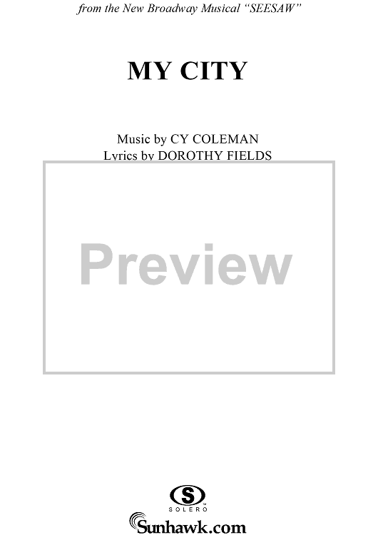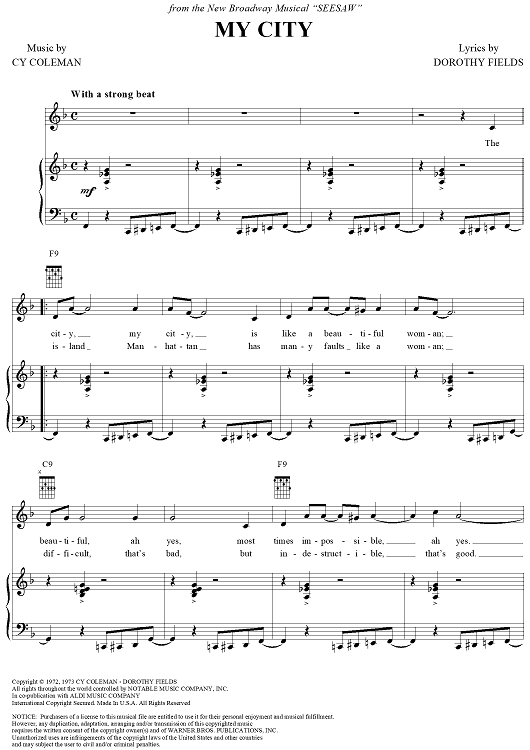 Digital Sheet Music for My City by Cy Coleman, Dorothy Fields scored for Piano/Vocal/Chords; id:272371
