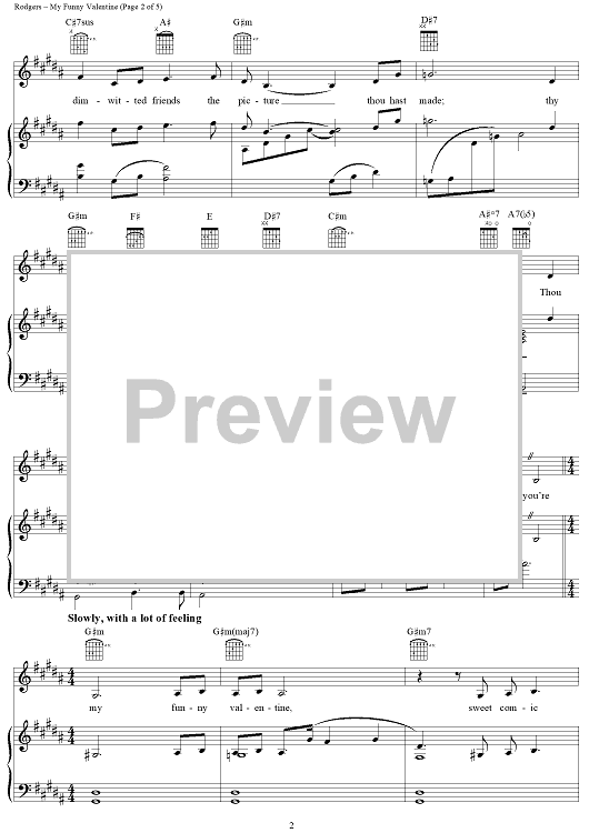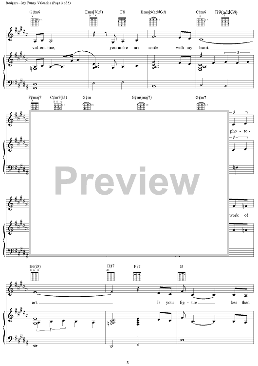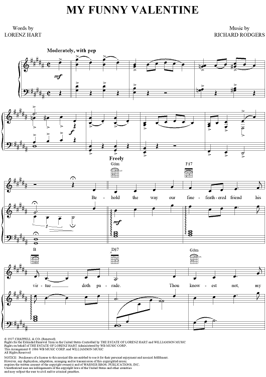 Digital Sheet Music for My Funny Valentine by Frank Sinatra, Miles Davis, Kenny Rogers, Chet Baker, Johnny Mathis, Richard Rodgers, Sarah Vaughan, Lorenz Hart, Michael Buble scored for Piano/Vocal/Chords; id:112165