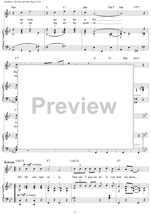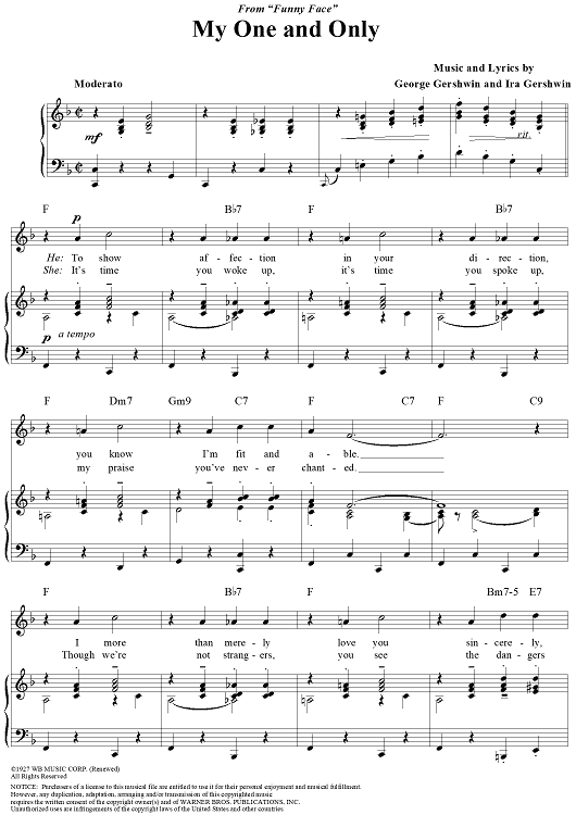 Digital Sheet Music for My One and Only (What Am I Gonna Do) by George Gershwin, Ira Gershwin, Fred Astaire scored for Piano/Vocal/Chords; id:111491