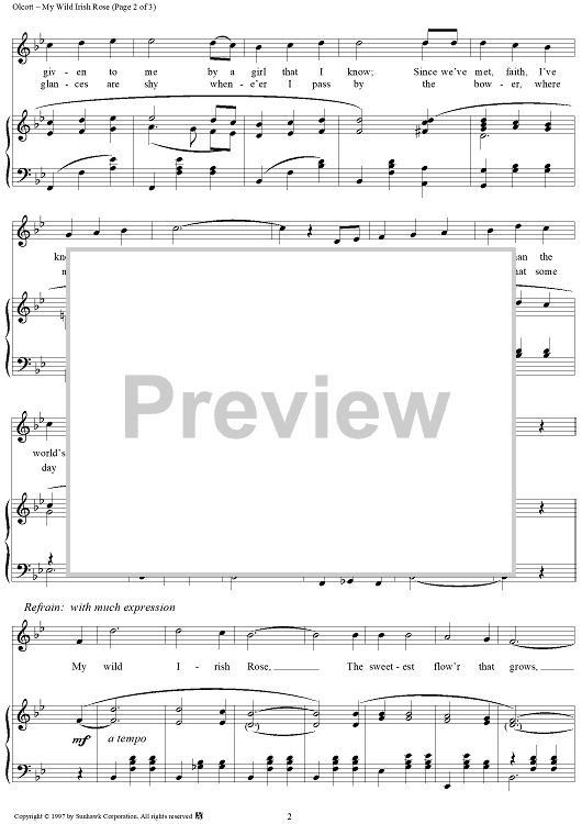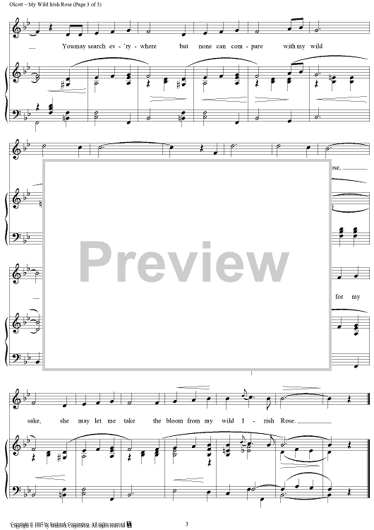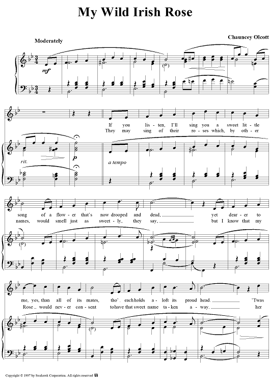 Digital Sheet Music for My Wild Irish Rose by Chauncey Olcott scored for Piano/Vocal; id:94834