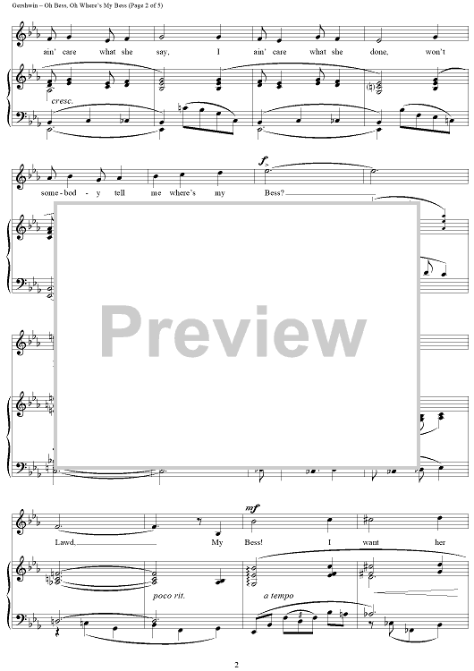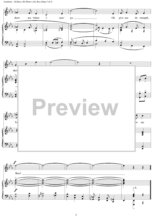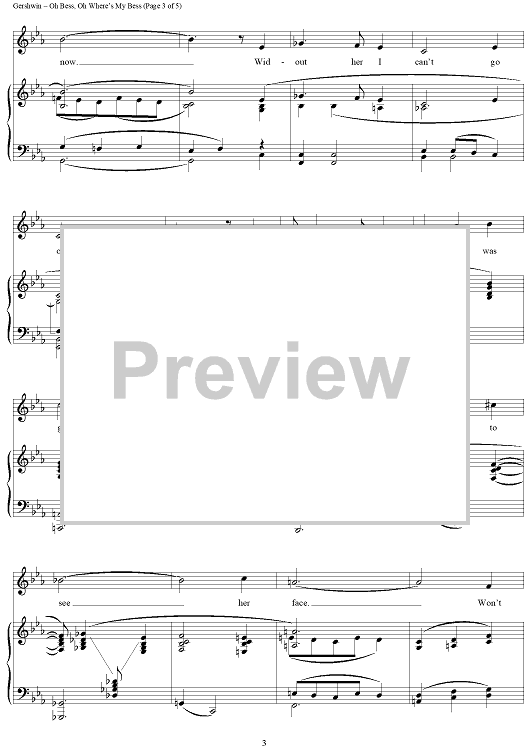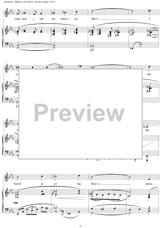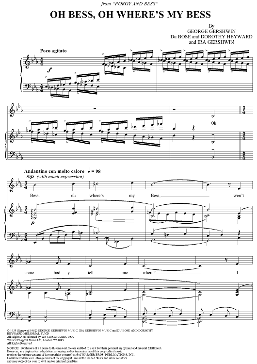Digital Sheet Music for Oh Bess, Oh Where's My Bess by George Gershwin, Ira Gershwin, Dubose & Dorothy Heyward scored for Piano/Vocal/Chords; id:120547