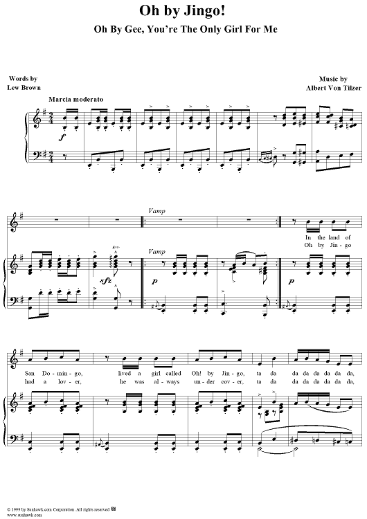 Digital Sheet Music for Oh By Jingo! by Lew Brown, Albert von Tilzer scored for Piano/Vocal; id:118412