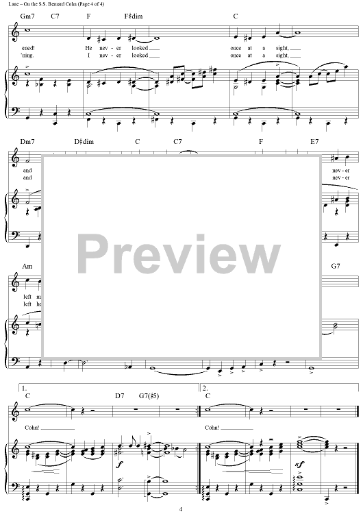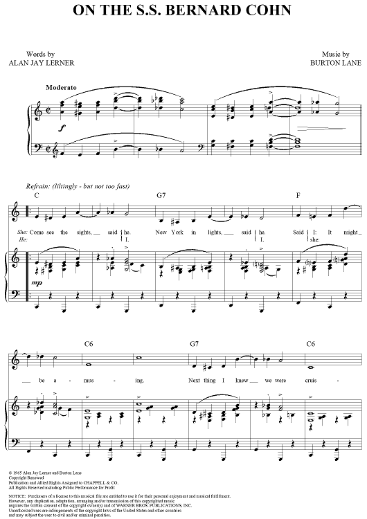Digital Sheet Music for On the S.S. Bernard Cohn by Burton Lane, Alan Jay Lerner scored for Piano/Vocal/Chords; id:297829