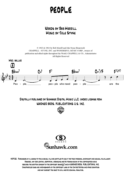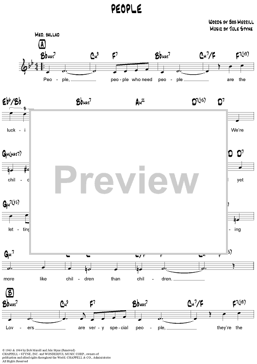 Digital Sheet Music for People by Jule Styne, Bob Merrill, Barbra Streisand scored for Lead Sheet; id:307520