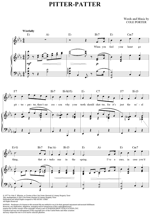 Digital Sheet Music for Pitter-Patter by Cole Porter scored for Piano/Vocal/Chords; id:303067