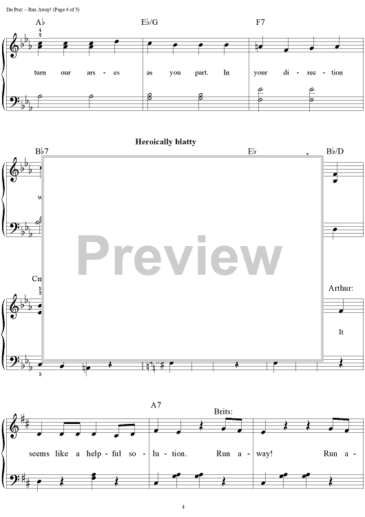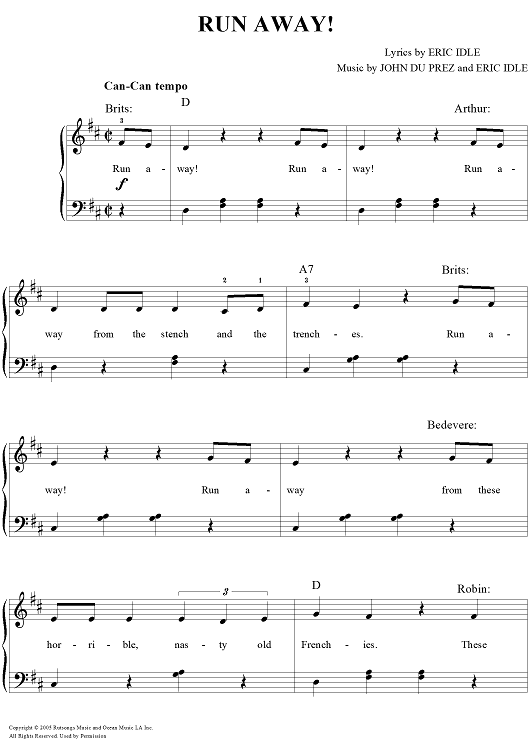 Digital Sheet Music for Run Away! by Eric Idle, John Du Prez scored for Easy Piano/Vocal/Chords; id:390114
