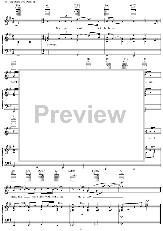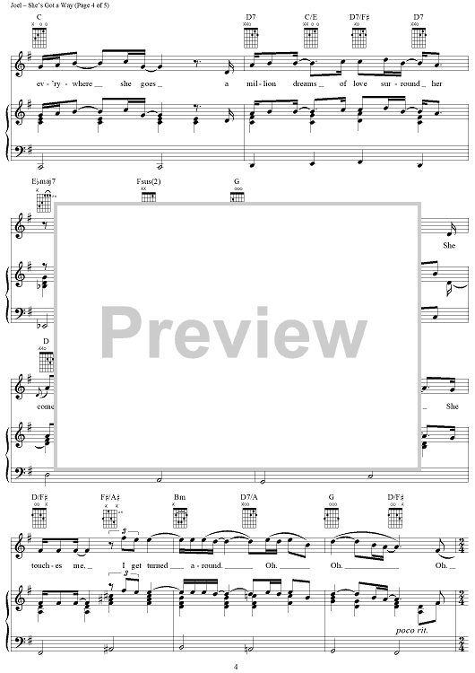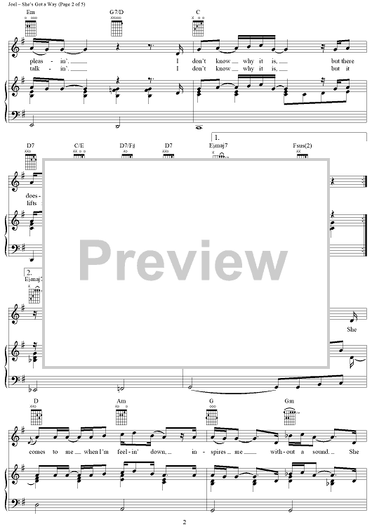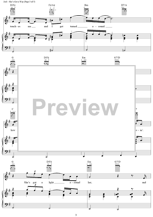 Digital Sheet Music for She's Got a Way by Billy Joel scored for Piano/Vocal/Chords; id:367165