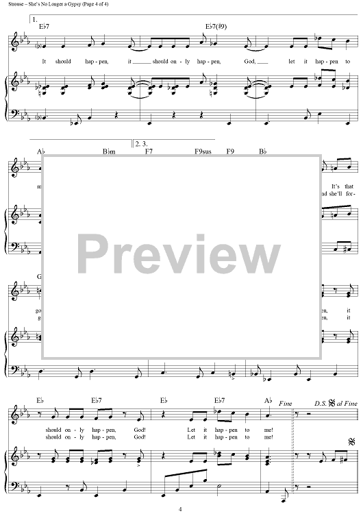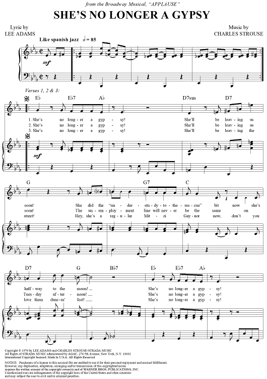 Digital Sheet Music for She's No Longer a Gypsy by Charles Strouse, Lee Adams scored for Piano/Vocal/Chords; id:259261