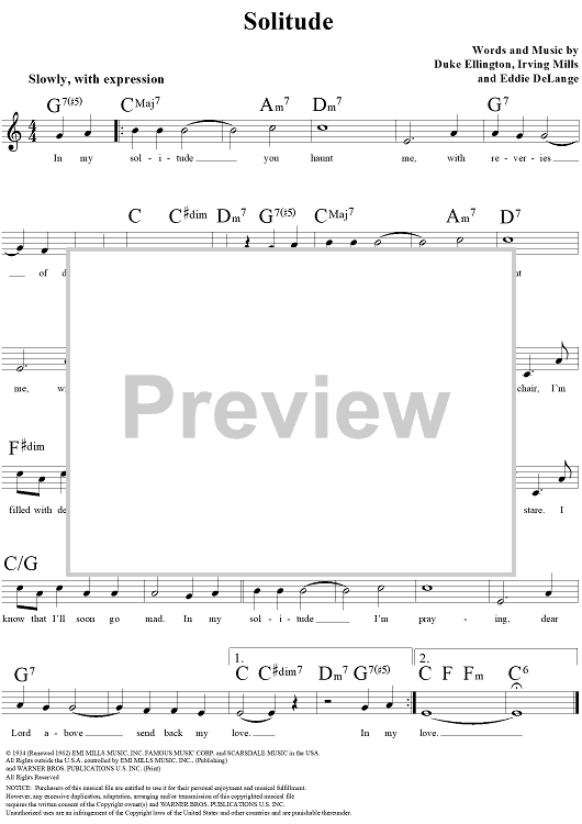 Digital Sheet Music for Solitude by Duke Ellington, Irving Mills, Ella Fitzgerald, Eddie De Lange scored for Lead Sheet; id:109316