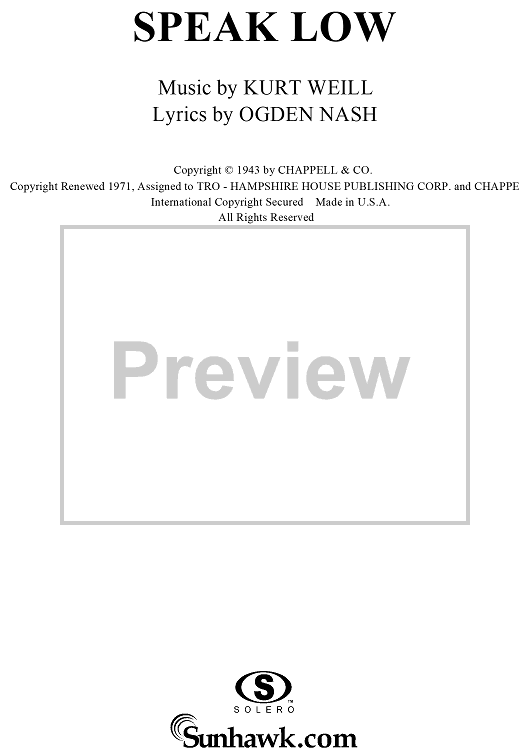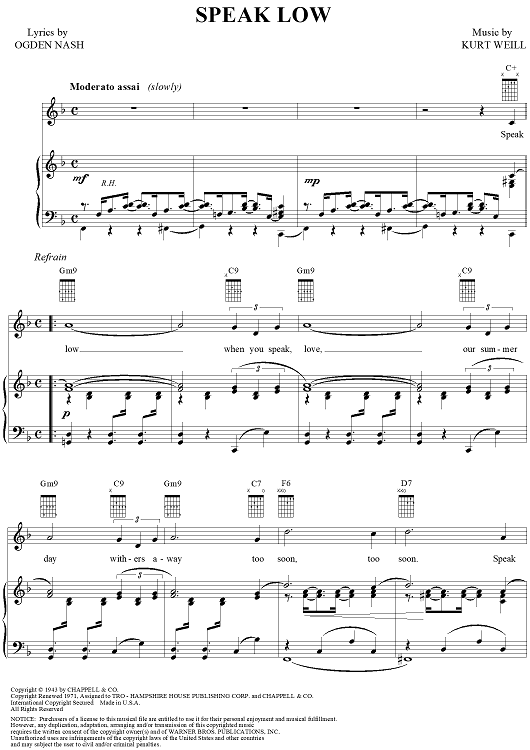 Digital Sheet Music for Speak Low by Frank Sinatra, Guy Lombardo, Ogden Nash, Kurt Weill scored for Piano/Vocal; id:113629