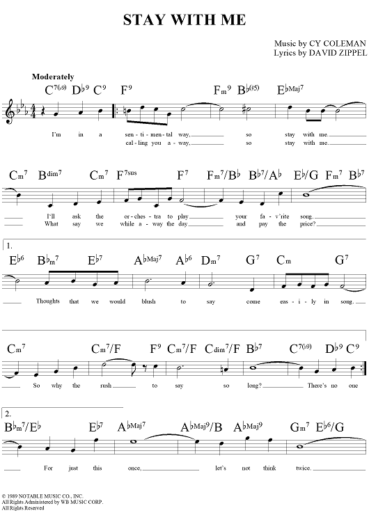 Digital Sheet Music for Stay With Me by Cy Coleman, David Zippel scored for Lead Sheet; id:111998