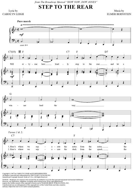 Digital Sheet Music for Step to the Rear by Carolyn Leigh, Elmer Bernstein scored for Piano/Vocal/Chords; id:275390