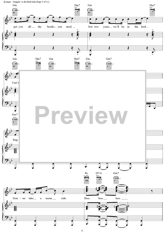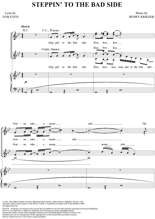 Digital Sheet Music for Steppin' to the Bad Side by Henry Krieger, Tom Eyen scored for Piano/Vocal/Chords; id:313476