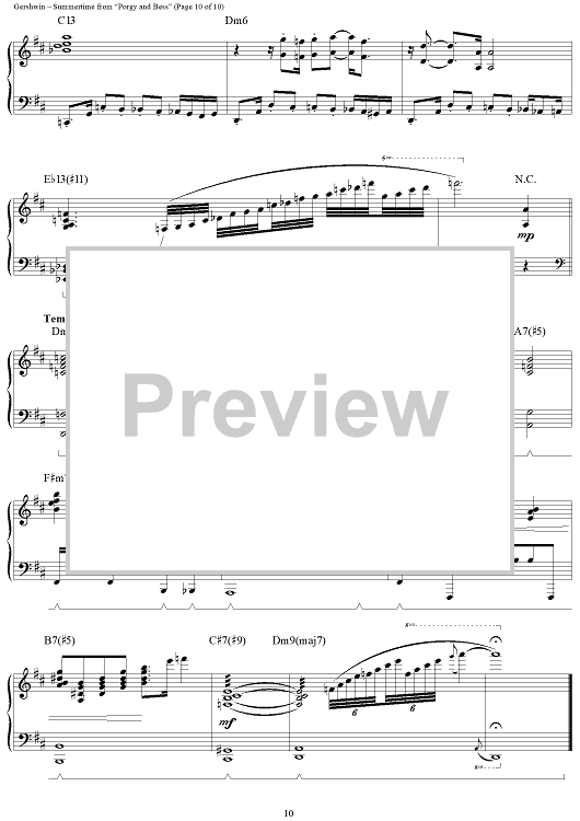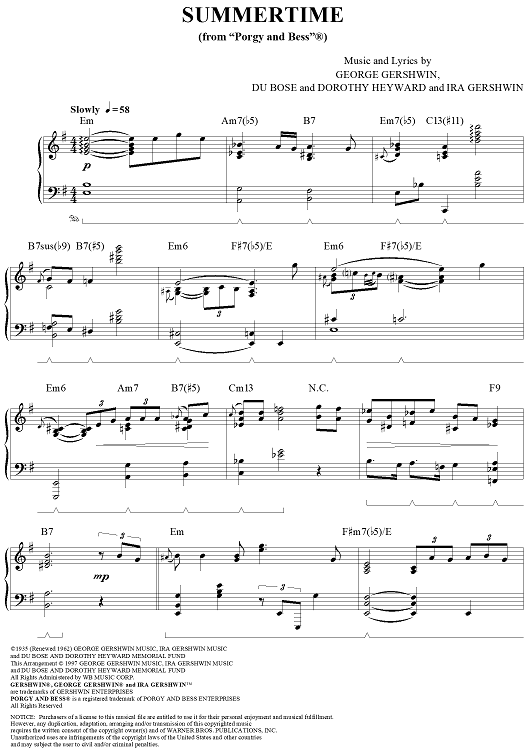 Digital Sheet Music for Summertime by George Gershwin, Ira Gershwin, Marcus Roberts, Dubose & Dorothy Heyward scored for Piano Solo; id:309119