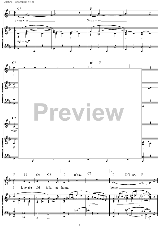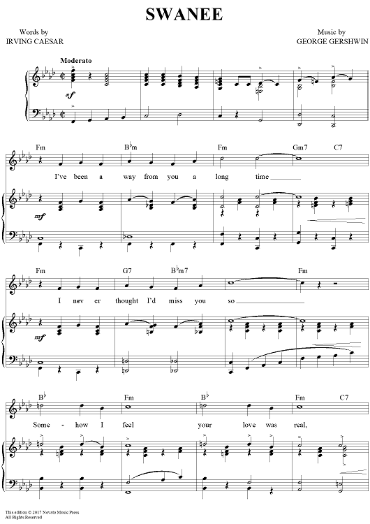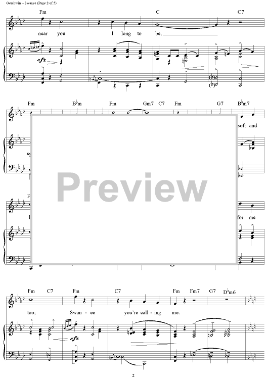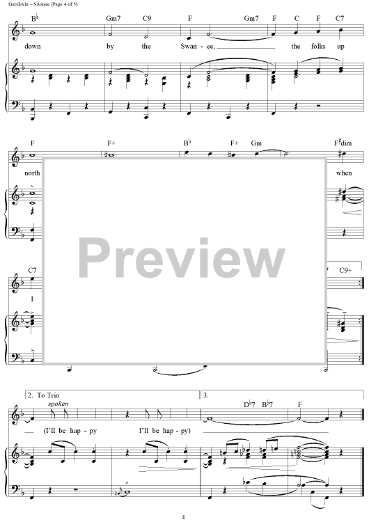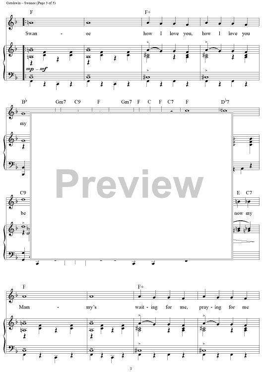 Digital Sheet Music for Swanee by George Gershwin, Irving Caesar scored for Piano/Vocal/Chords; id:95689
