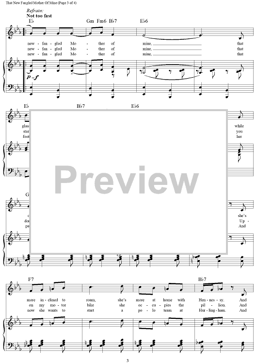 Digital Sheet Music for That New Fangled Mother of Mine by George Gershwin, Desmond Carter scored for Piano/Vocal/Chords; id:216726