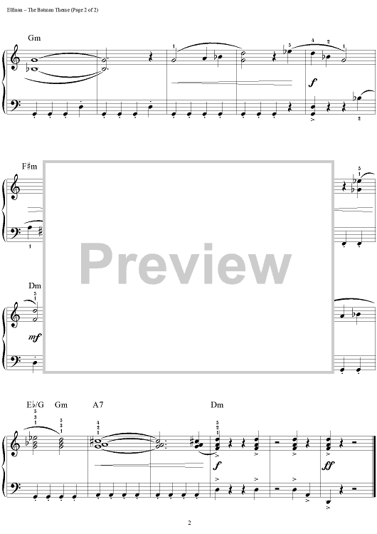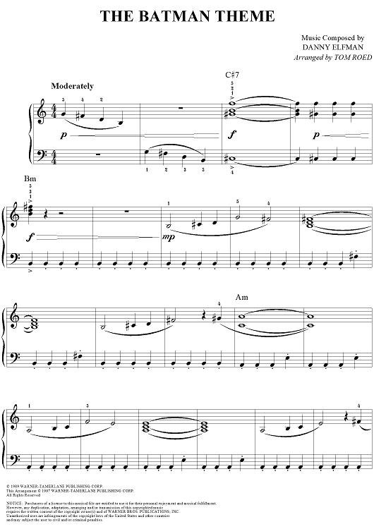 Digital Sheet Music for The Batman Theme by Danny Elfman, Tom Roed scored for Easy Piano; id:312510
