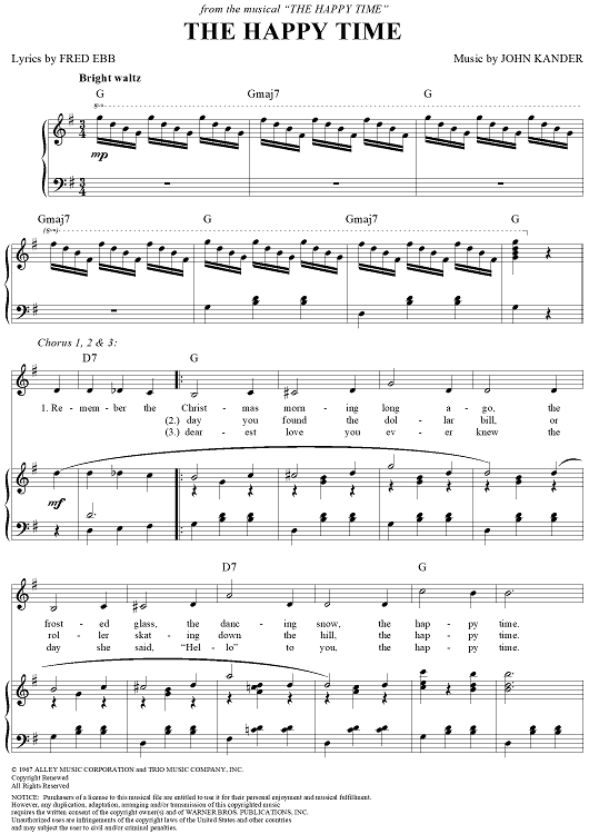 Digital Sheet Music for The Happy Time by John Kander, Fred Ebb scored for Piano/Vocal/Chords; id:249771