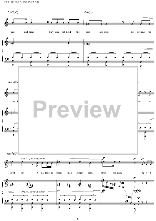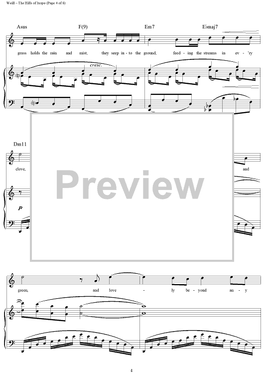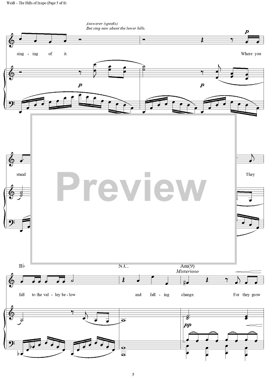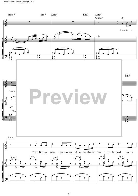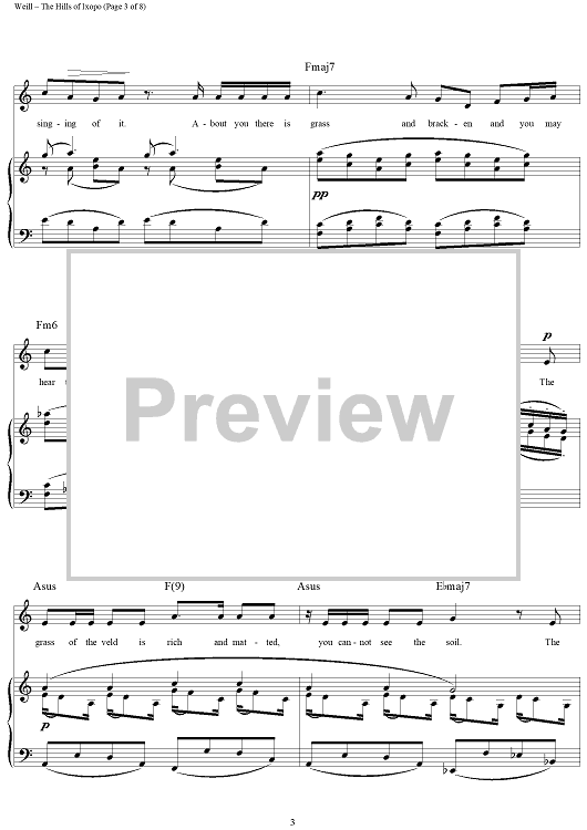 "The Hills of Ixopo" Sheet Music by Kurt Weill