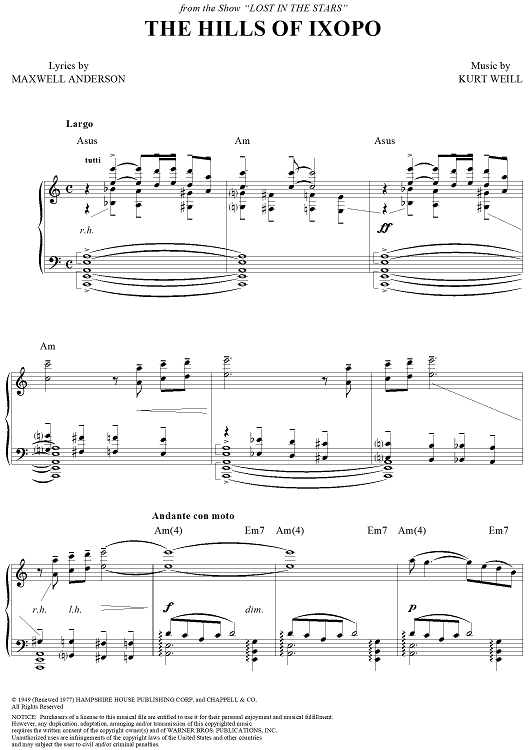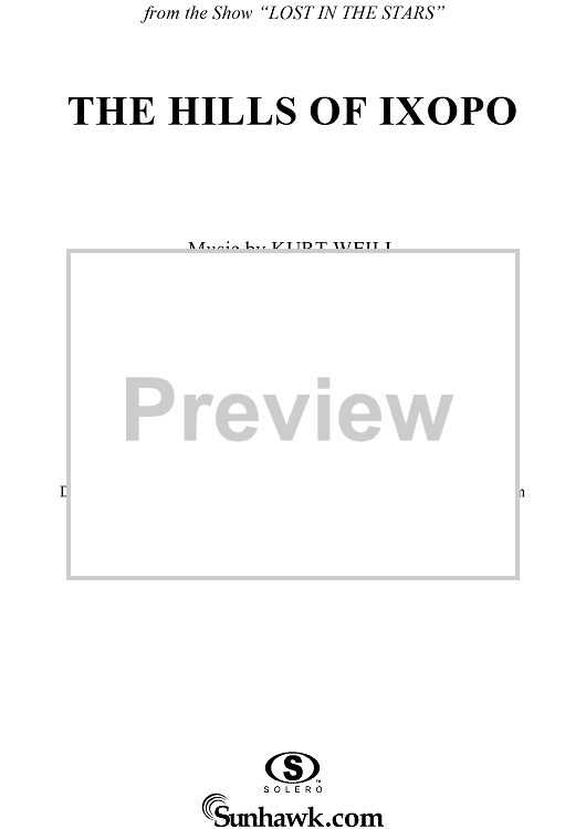 Digital Sheet Music for The Hills of Ixopo by Maxwell Anderson, Kurt Weill scored for Piano/Vocal/Chords; id:288494