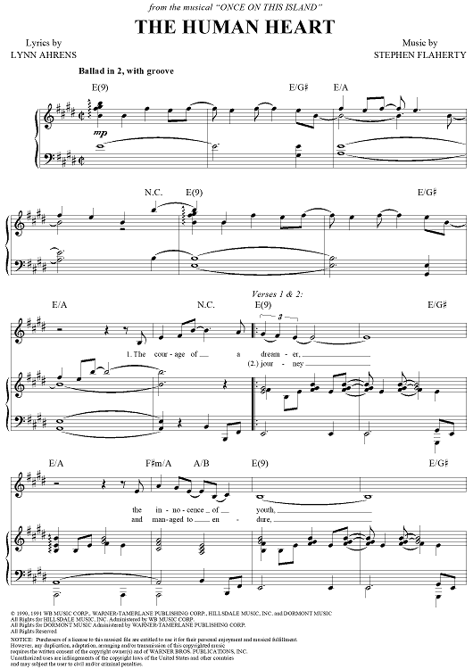 Digital Sheet Music for The Human Heart by Stephen Flaherty, Lynn Ahrens scored for Piano/Vocal/Chords; id:288470