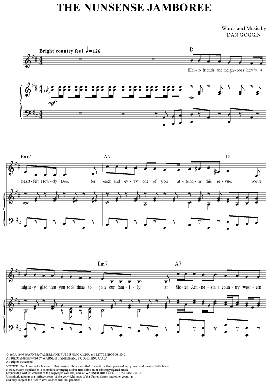 Digital Sheet Music for The Nunsense Jamboree by Dan Goggin scored for Piano/Vocal/Chords; id:312529