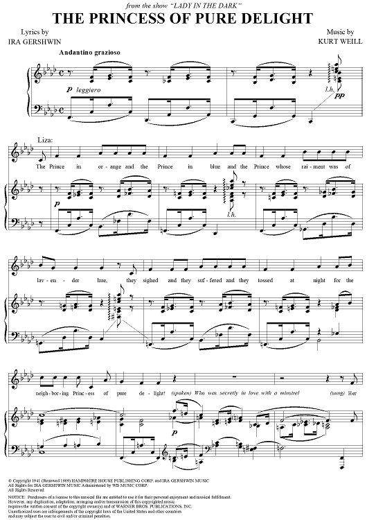 Digital Sheet Music for The Princess of Pure Delight by Ira Gershwin, Kurt Weill scored for Piano/Vocal; id:263561
