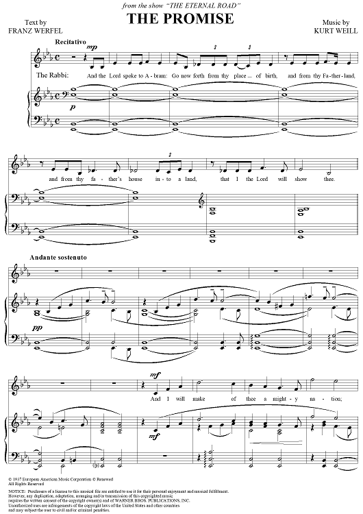 Digital Sheet Music for The Promise by Franz Werfel, Kurt Weill scored for Piano/Vocal; id:263645