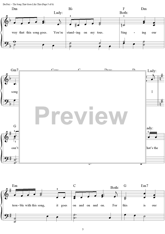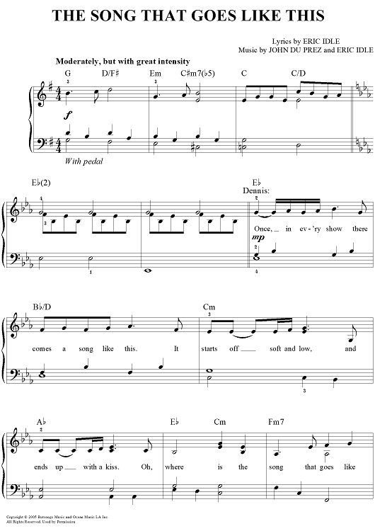 Digital Sheet Music for The Song That Goes Like This by Eric Idle, John Du Prez scored for Easy Piano/Vocal/Chords; id:390111