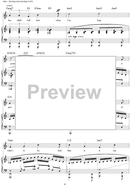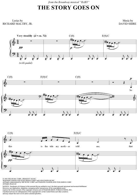 Digital Sheet Music for The Story Goes On by David Shire, Richard Maltby Jr. scored for Piano/Vocal/Chords; id:257867