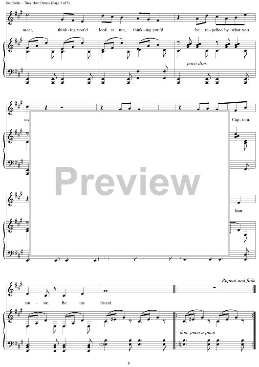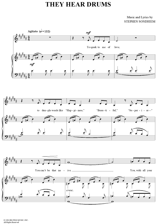 Digital Sheet Music for They Hear Drums by Stephen Sondheim scored for Piano/Vocal; id:355963