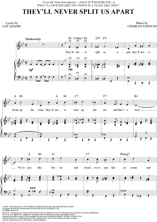 Digital Sheet Music for They'll Never Split Us Apart by Charles Strouse, Lee Adams scored for Piano/Vocal/Chords; id:148644