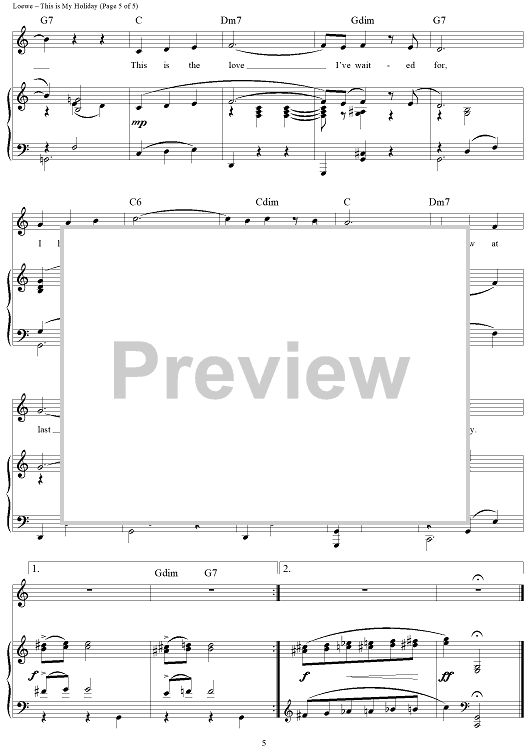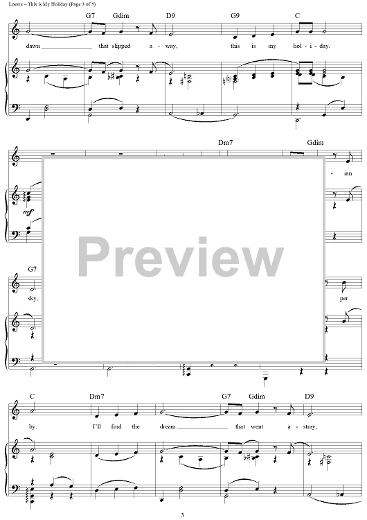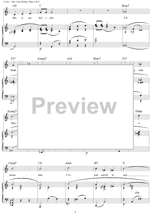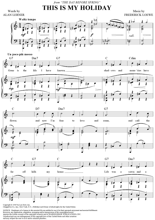 Digital Sheet Music for This is My Holiday by Frederick Loewe, Alan Jay Lerner scored for Piano/Vocal/Chords; id:314339