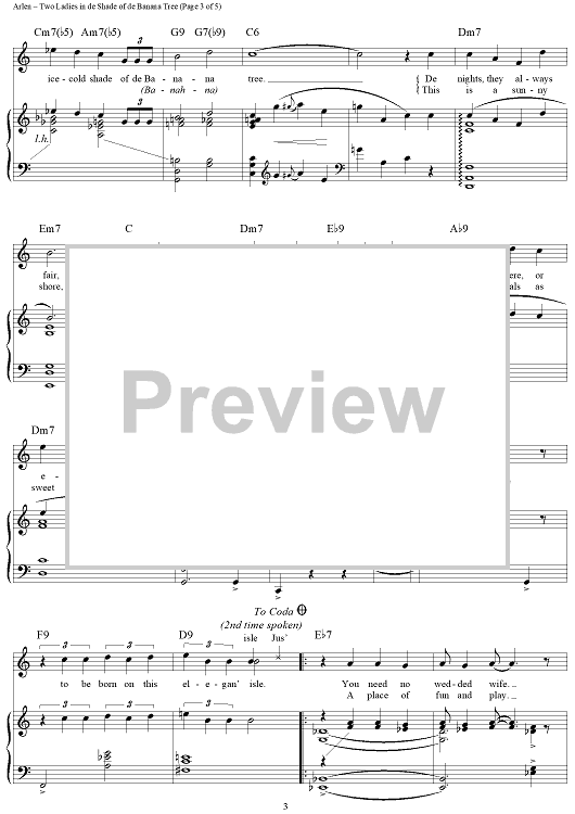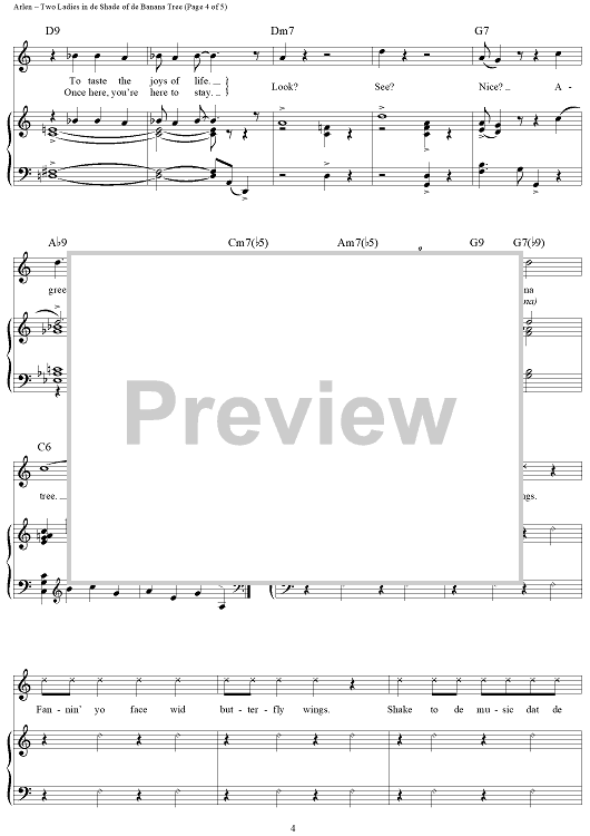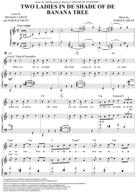 Digital Sheet Music for Two Ladies in de Shade of de Banana Tree by Harold Arlen, Truman Capote scored for Piano/Vocal/Chords; id:356001