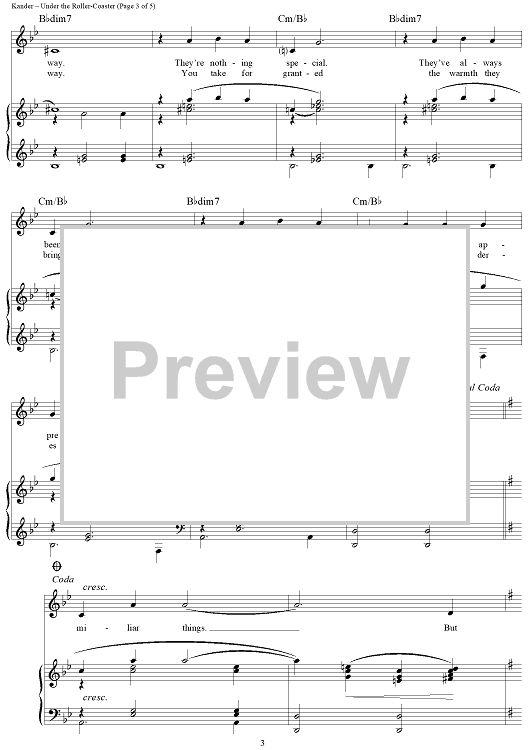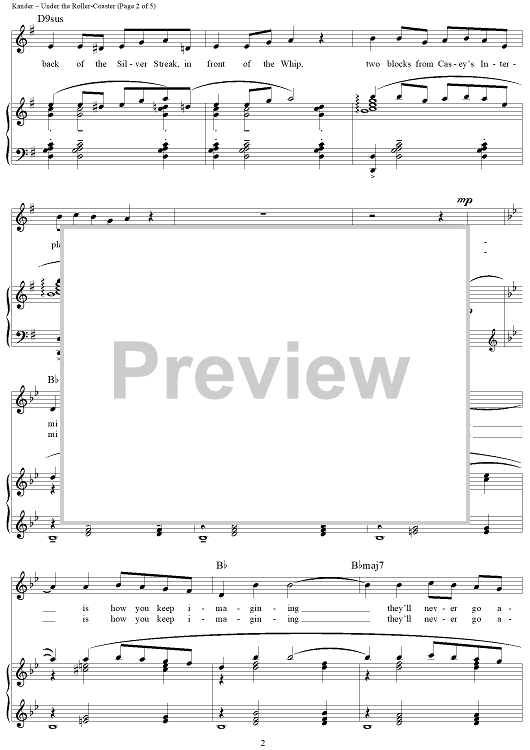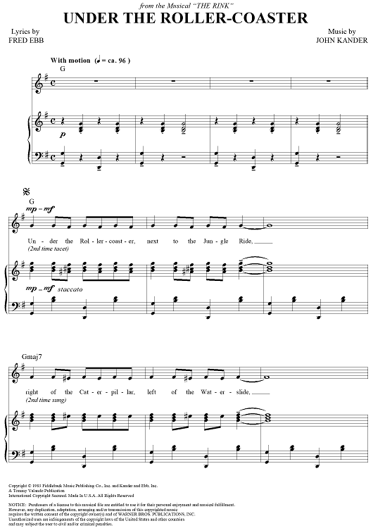 Digital Sheet Music for Under the Roller Coaster by John Kander, Fred Ebb scored for Piano/Vocal/Chords; id:249731