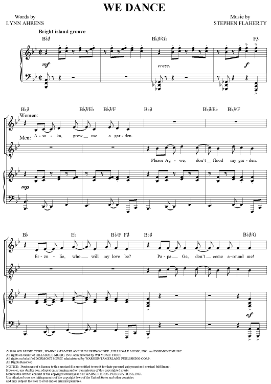 Digital Sheet Music for We Dance by Stephen Flaherty, Lynn Ahrens scored for Piano/Vocal/Chords; id:315068