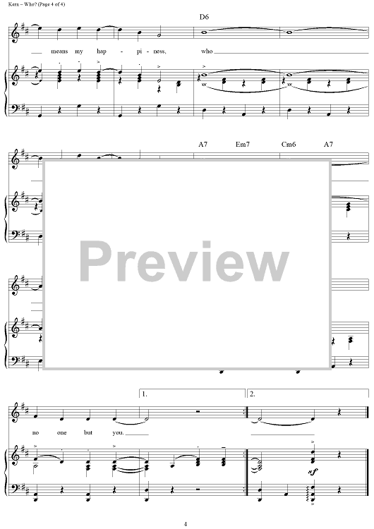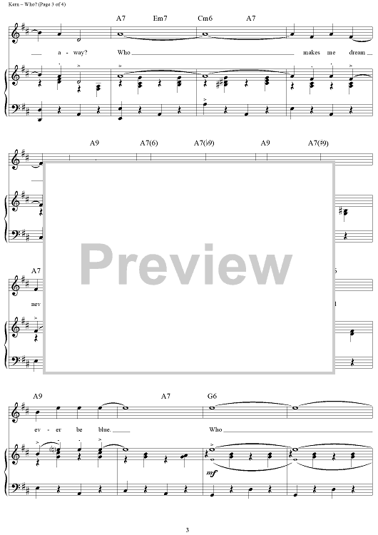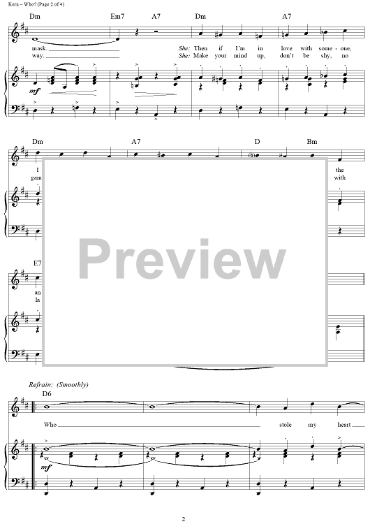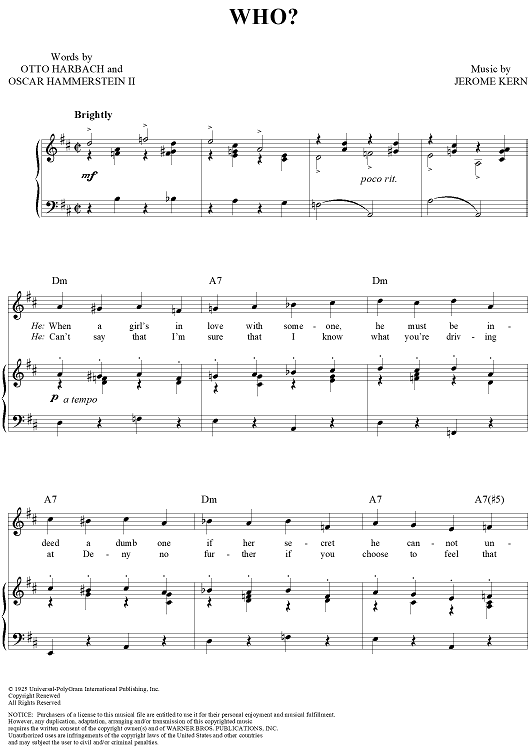 Digital Sheet Music for Who? by Jerome Kern, Oscar Hammerstein II, Otto Harbach scored for Piano/Vocal/Chords; id:233606